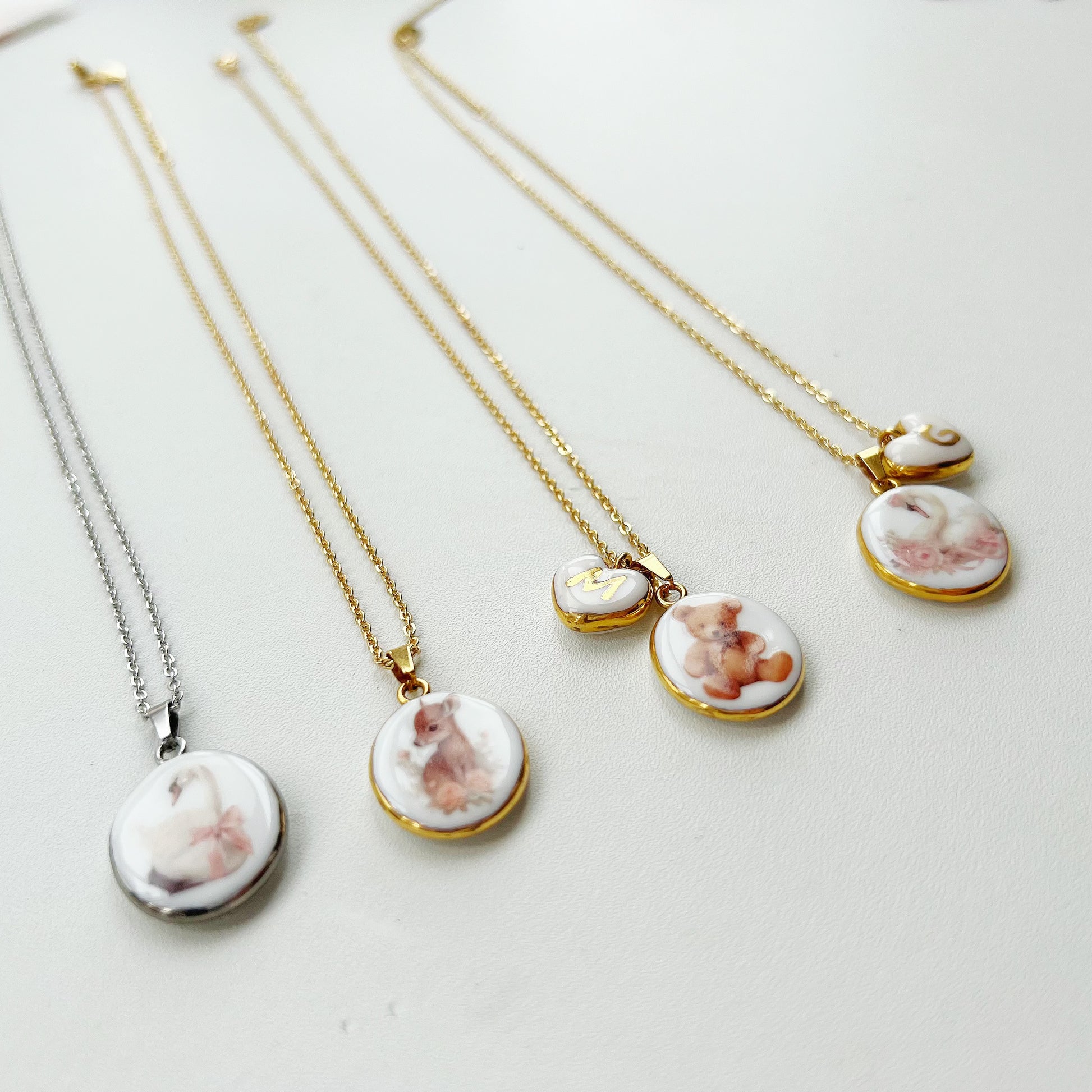 Each individual glass charms base are  delicately form by hand in the flame, reaching temperatures of up to 800 degrees celsius, after cooling down, carefully put the decal on the charm base surface and highlight with 24k gold lustre .This artwork is then transferred to a kiln where it undergoes a firing process at approximately 600 degrees celsius. The high temperature fuses the decal to the glass surface, creating a permanent and vibrant image.